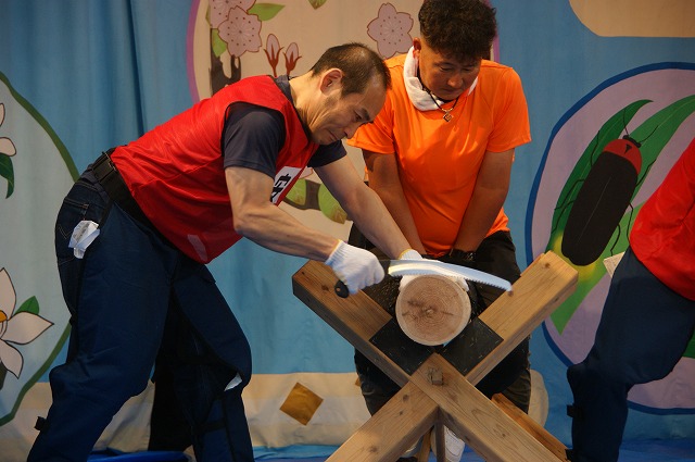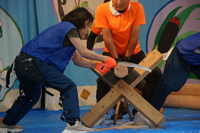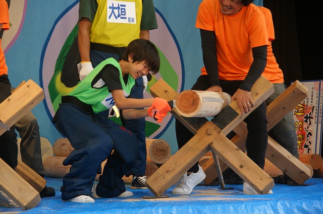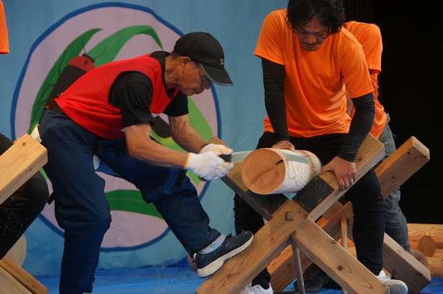 今年のステージイベントも丸太切り選手権に始まり、川野夏美さんの歌謡ステージやみはるさんのものまねステージ、松原神楽社中による石見神楽や益田東高等学校ダンス部によるパフォーマンスと盛りだくさん。